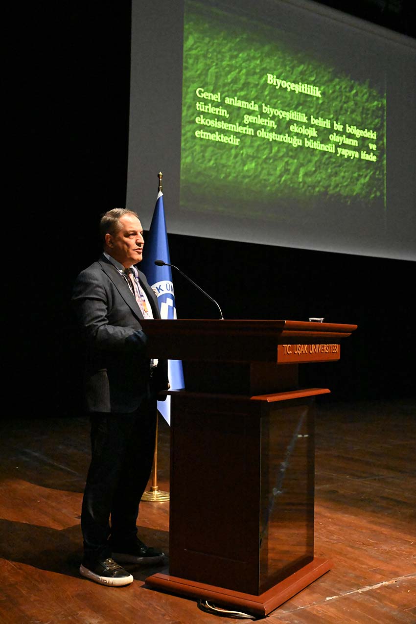 Açılış konuşmalarının ardından Atatürk Üniversitesi Ziraat Fakültesinden Prof. Dr. Sezai Ercişli “Küresel Biyoçeşitlilik Kaybı: Etkenler ve Tarıma yansımaları” başlıklı açılış sunumunu yaptı. Prof. Dr. Ercişli yaptığı sunumda dünyadaki biyoçeşitlilik ve Türkiye’deki biyoçeşitliliğin korunması için yapılması gerekenleri anlattı.