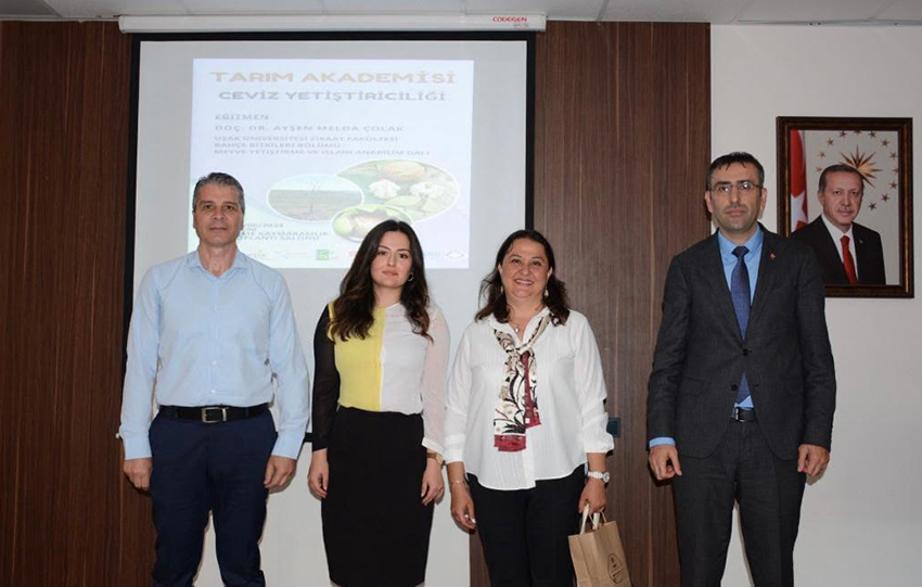 Tarım ve Orman Bakanlığı, AB ve Eşme Kaymakamlığı tarafından yürütülen ve yerel toplulukların kendi yerel kalkınma süreçlerine katılmalarını sağlamak amacıyla geliştirilmiş yenilikçi bir yaklaşım olan Leader Projesi ‘Tarım Akademisi’ kapsamında yerel üreticilerle bir araya gelen Bahçe Bitkileri Bölüm başkanı Doç. Dr. Ayşen Melda Çolak; cevizin ekim alanının özelliklerinden, sulama ve bakım yöntemlerine kadar geniş bir alanda bilgi verdi. Bölge için ceviz üretiminin önemini anlatan Doç. Dr. Çolak, üreticilerden gelen soruları yanıtlayarak eğitimi sonlandırdı.