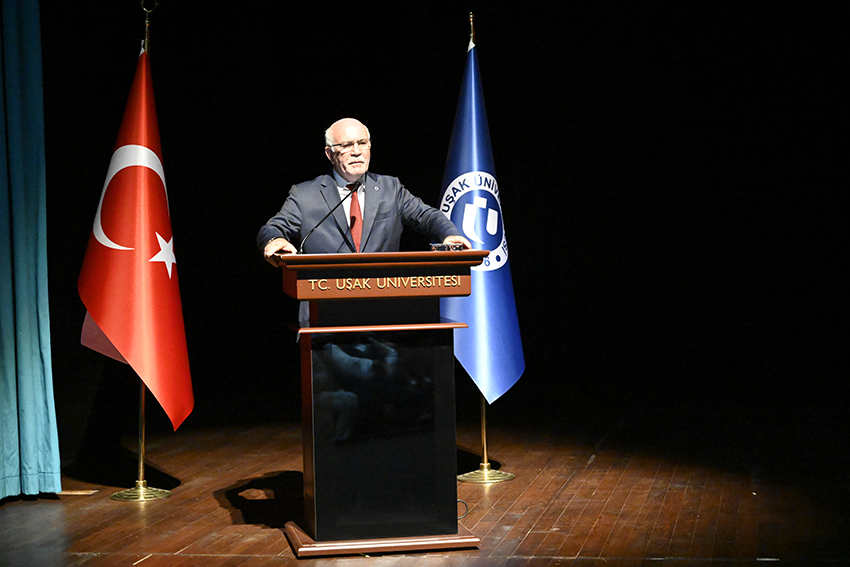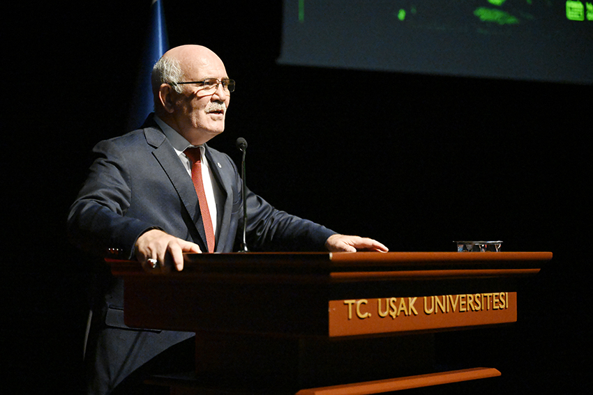 Prof. Dr. Ekrem Savaş konuşmasında şu noktalara vurgu yaptı: “Şehit ve gazilerimizin fedakarlıkları sayesinde, bugün özgür ve bağımsız bir ülke olarak geleceğe güvenle bakıyoruz. Uşak Üniversitesi olarak onların hatırasını yaşatmak ve gelecek nesillere aktarmak hiç unutmayacağız görevlerimizden biridir. 15 Temmuz 2016 tarihinde hain Fetöcü teröristler tarafından milli iradeye vurulmak istenen darbe, Cumhurbaşkanımız Sayın Recep Tayyip Erdoğan’ın liderliği ve necip milletimizin kahramanca direnişi sayesinde Allah’a hamdolsun ki durdurulmuştur. Aziz milletimiz o gece, dünya tarihinde çok az görülen bir sivil direniş örneği göstermiş, bir demokrasi destanı yazmıştır. Şairin “Siper et gövdeni, dursun bu hayâsızca akın” dediği gibi; necip milletimiz de göğsünü siper etmiş ve bu hayâsızca akını püskürtmüştür.”