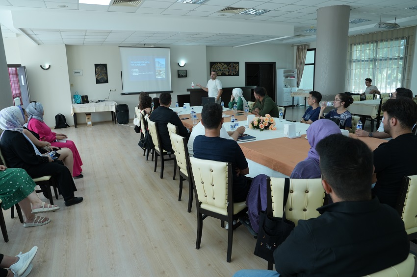 Zafer Teknopark Genel Müdür Yardımcısı Doç. Dr. Hakan Boz toplantıya katılan kursiyerlere bir sunum yaptı. Doç. Dr. Boz, yaptığı sunumda gençlere teknokentlerin sunduğu imkanların yanı sıra kendi işini kurmak isteyen gençlere devletin ve kurumların verdiği destekler hakkında da bilgi verdi.
