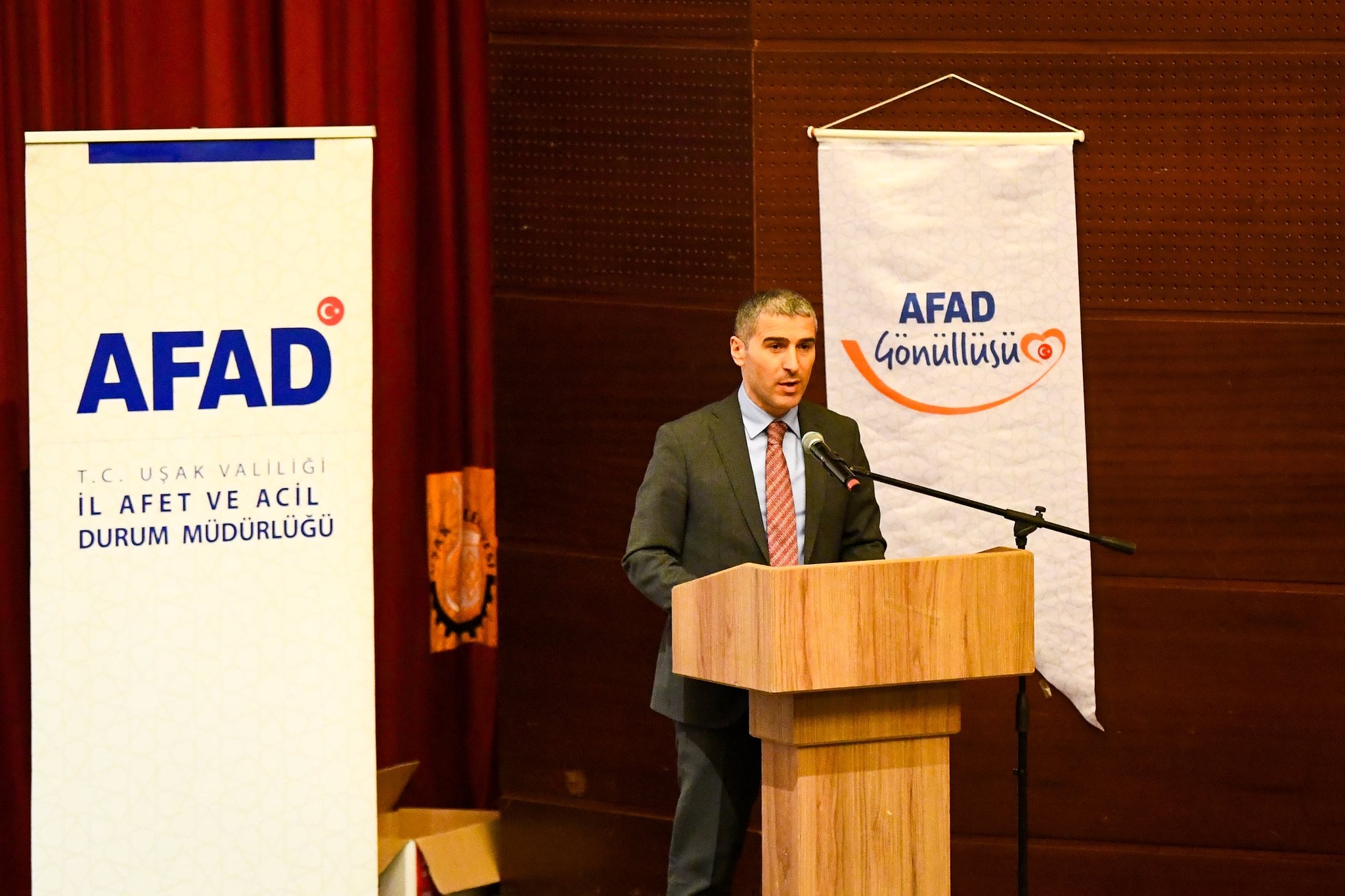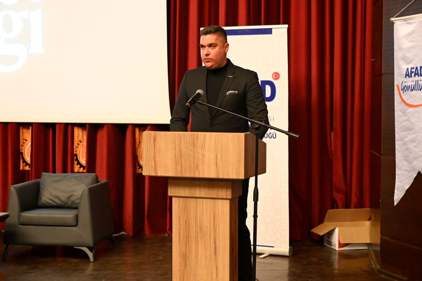 Uşak il AFAD Müdürü Burak Edin, 11 ilimizde yaklaşık 14 milyon insanımızı etkileyen asrın felaketinde 35 bin 250 kişilik ulusal ve uluslararası kurtarma ordusu ile 26 bin 32 enkazda kurtarma faaliyetlerinin yapıldığını belirterek ‘‘Türkiye’nin kadim devlet aklı depremin ilk anından itibaren çok hızlı reaksiyon göstererek Kahramanmaraş depremlerine müdahale etmiştir. Bizler de Uşak AFAD İl Müdürlüğü olarak depremin ilk günü Hatay’a intikal ettik ve Samandağ ilçesinde 11 gün kesintisiz kurtarma faaliyetleri icra ettik. Bugün buradan tüm afetlerde adanmışlık ve fedakârlıkla mücadele eden, arama-kurtarma yapan AFAD gönüllerimize teşekkür ediyorum. Verdiğimiz eğitimlere katılan ve Destek AFAD Gönüllüsü olan vatandaşlarımızı da tebrik ediyorum. 6 Şubat depremlerinde hayatını kaybeden insanlarımızı bir kez daha rahmetle yad ediyorum’’ ifadelerini kullandı.