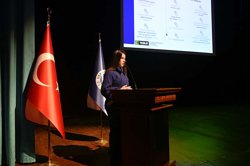 Lecturer Dr. Fatma Akpolat from the Occupational Health and Safety Coordinatorship delivered the Occupational Health and Safety training, Psychologist Sevgican Yaşa Dağlı from the Department of Health, Culture and Sports delivered the Anti-Addiction training, Psychologist Merve Uçak from the Department of Health, Culture and Sports delivered the Work Ethics, Motivation and Stress Management training, Dean of the Faculty of Communication Prof. Dr. Murat Sezgin from the Faculty of Communication delivered the Interpersonal Relations and Effective Communication Skills training, and Research Assistant Dr. Burcu Yürük from the Faculty of Applied Sciences delivered the Financial Literacy training. Also, İŞKUR Youth Programme Introduction was presented by Branch Manager Mehmet Kaya and Social Worker Meryem Gül from the Department of Health, Culture and Sports.