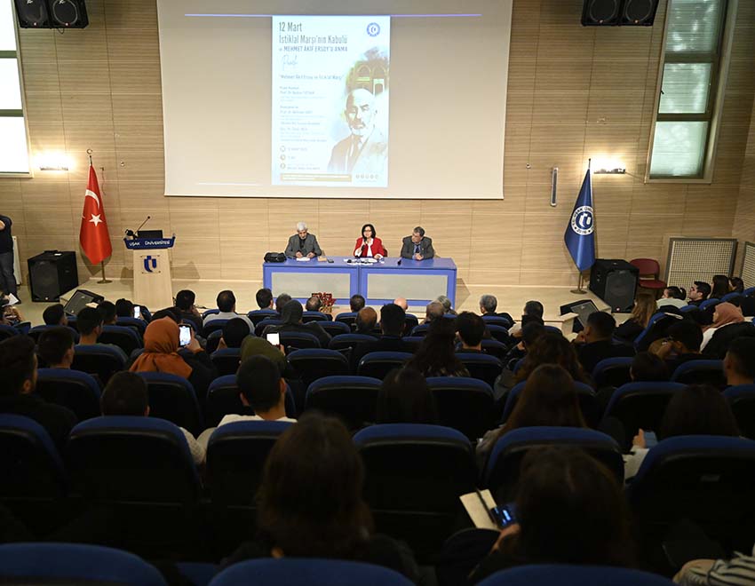 Uşak Üniversitesi Atatürk İlkeleri ve İnkılap Tarihi Araştırma ve Uygulama Merkezi Müdürlüğü ile Tarih Topluluğu tarafından, 12 Mart İstiklal Marşı'nın kabulü ve Mehmet Akif Ersoy'u anma etkinlikleri kapsamında "Mehmet Akif Ersoy ve İstiklal Marşı" paneli düzenlendi.