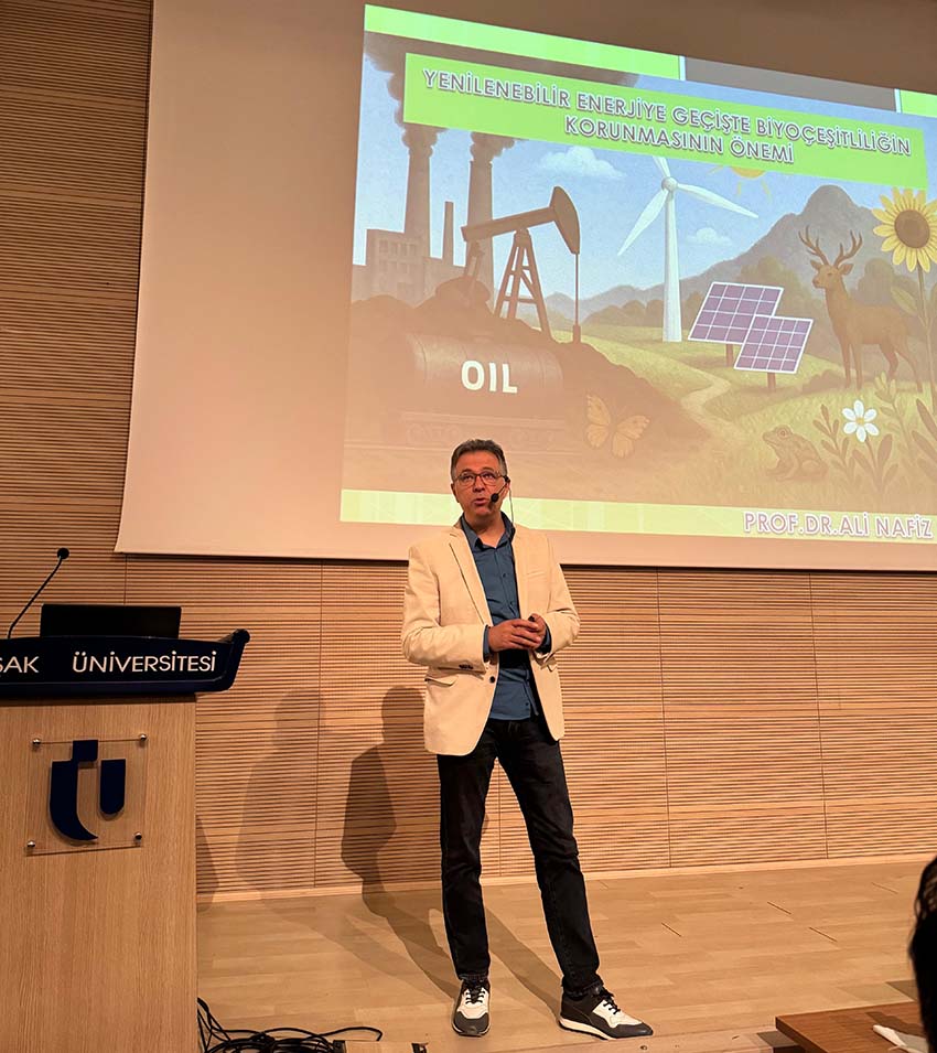 Uşak Üniversitesi Enerji, Çevre ve Sürdürülebilirlik Uygulama ve Araştırma Merkezi tarafından “Yenilenebilir Enerjiye Geçişte Biyoçeşitliliğin Korunmasının Önemi” başlıklı konferans organize edildi.