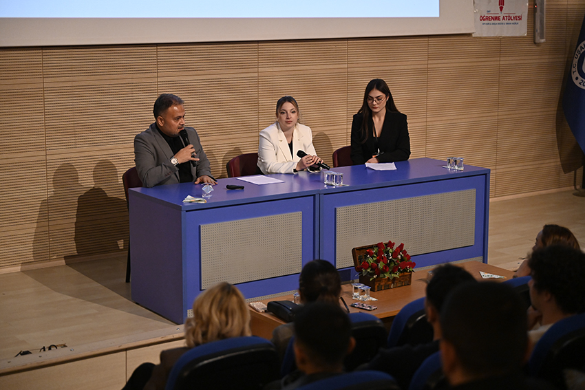 Program, İhracat ve Lojistik Topluluğu Topluluk Danışmanı Doç. Dr. Makbule Hürmet Çetinel’in açılış konuşması ile başladı. Ardından Lojistik Yönetimi Bölümü öğrencisi ve topluluk başkanı Serap Yılmaz söz alarak katılımcıları selamladı.