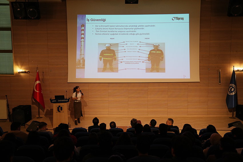 Kariyer Günü’25 kapsamında düzenlenen özel oturumda Uşak Üniversitesi mezunu ve TÜPRAŞ Kıdemli Bakım Mühendisi Nilay Yurtören, tecrübelerini paylaştı. Yurtören; öğrenci sıralarından başlayarak pozisyonuna uzanan başarı hikâyesini dinleyicilerle paylaştı. Uşak Üniversitesi’nde aldığı eğitimin kariyer yolculuğundaki belirleyici rolüne dikkat çeken Nilay Yurtören, azim ve sürekli gelişimin meslek hayatındaki önemini vurguladı. Yurtören; konuşmasında ayrıca dönüştürülebilir enerji sistemlerine odaklanarak genç mühendislere geleceğin enerji alanlarında cesur adımlar atmaları yönünde ilham verdi.