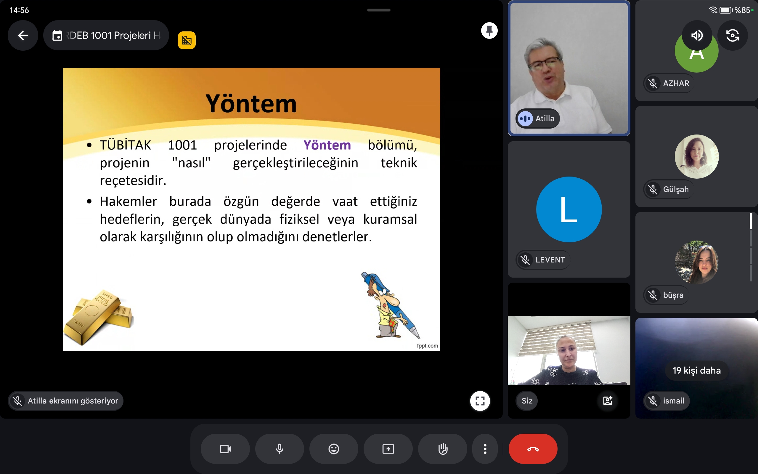Eğitime Afyon Kocatepe Üniversitesi Malzeme Bilimi ve Mühendisliği öğretim üyesi ve TTO koordinatörü Prof. Dr. Atilla Evcin eğitmen olarak katıldı. Prof. Dr. Atilla Evcin, TÜBİTAK 1001 programının tanıtımı, proje başlığı, projenin özgün değeri, yöntem, proje yönetimi, projenin yaygın etkisi ve proje başvurusunun nasıl yapılacağı konularında bilgi verdi.