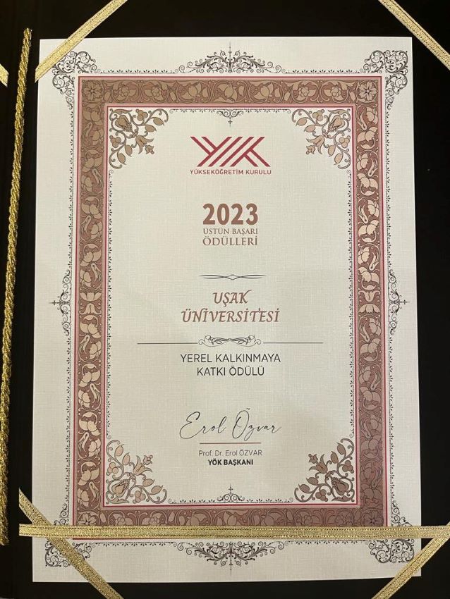 Rector Savaş said, "We are one of the Regional Development Oriented Universities, which was first announced by our President Recep Tayyip Erdoğan in 2016. Our regional development-oriented studies are rewarded. Today, the award presented to us by our President Mr. Erdoğan has given us great honour and pride. I would like to thank our President of the Council of Higher Education Prof. Dr. Özvar and all members of the Council of Higher Education for their support, especially our President. As Uşak University family, we will continue to achieve important successes in the 2023-2024 academic year.''