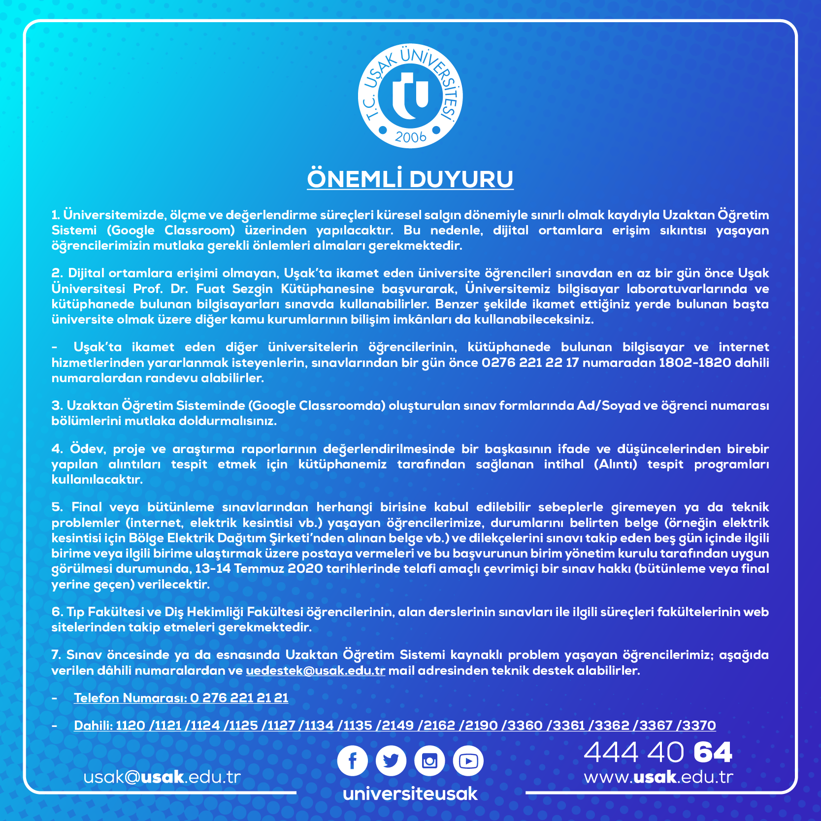 Ana Sayfa / Duyurular / Öğrencilerimiz İçin Sınavlar Hakkında Önemli Duyuru