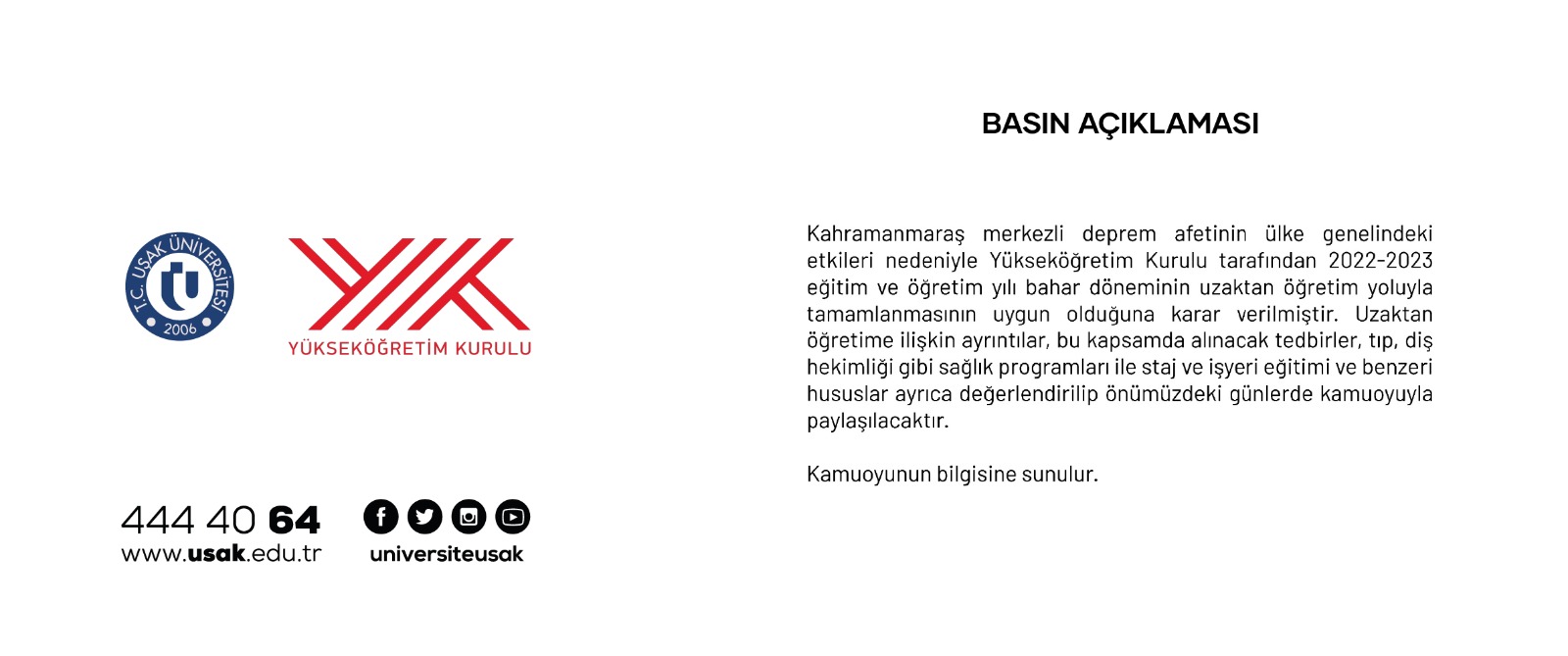 Ana Sayfa / Duyurular / 2022 - 2023 Akademik Yılı Bahar Dönemi Uzaktan Eğitim Basın Açıklaması