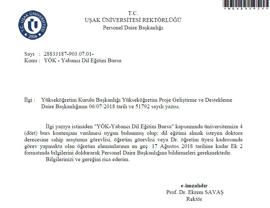 Yabancı Dil Eğitimi İçin Yurtdışına Gönderilecek Öğretim Elemanlarına Yabancı Dil Kurs Giderlerinin Desteklenmesi Amacıyla Burs Verilmesine İlişkin Usul ve Esaslar için tıklayınız.