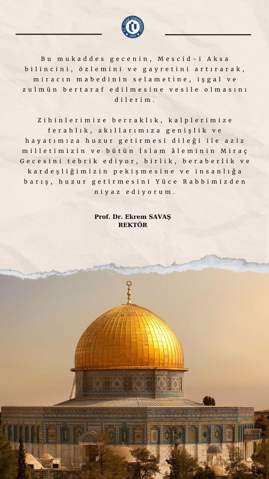 Ana Sayfa / Duyurular / Rektörümüz Prof. Dr. Ekrem SAVAŞ'ın Miraç Kandili Mesajı