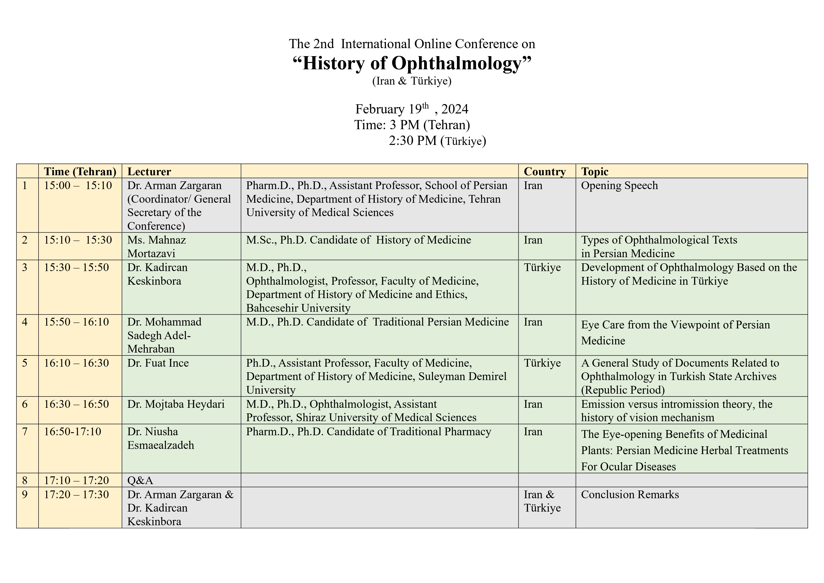 The 2nd International Online Conference on History of Ophthalmology (Iran and Türkiye)
