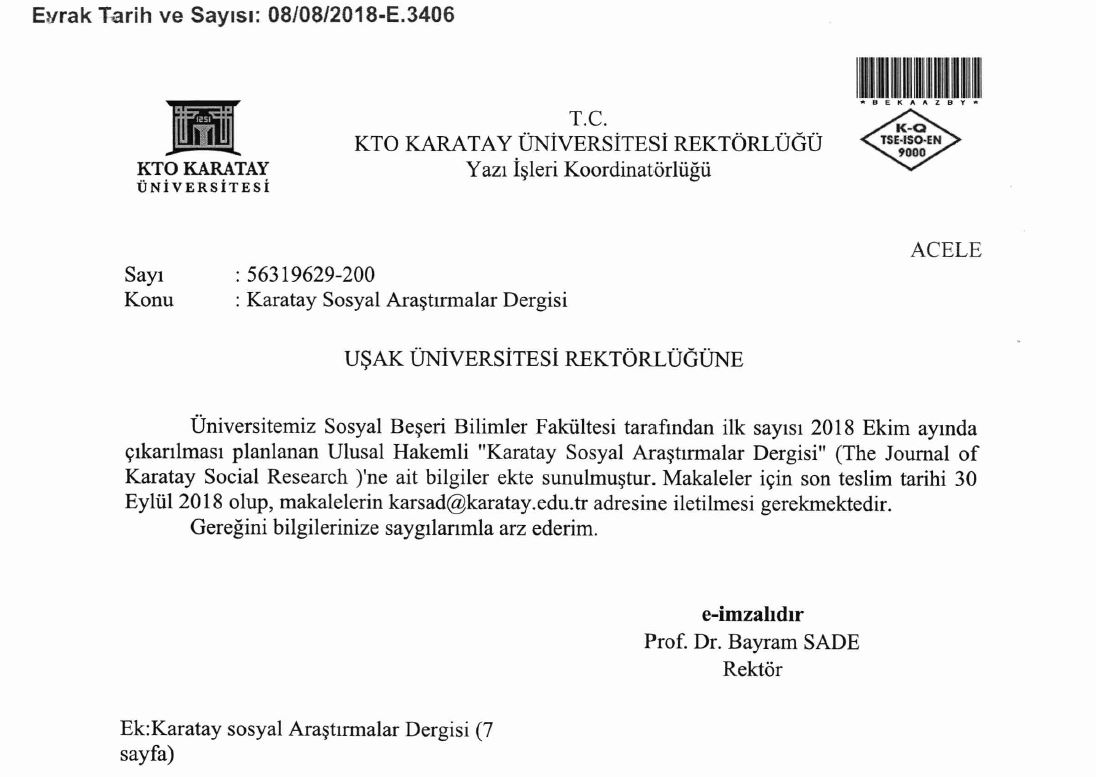 Ana Sayfa / Duyurular / Karatay Sosyal Araştırmalar Dergisi