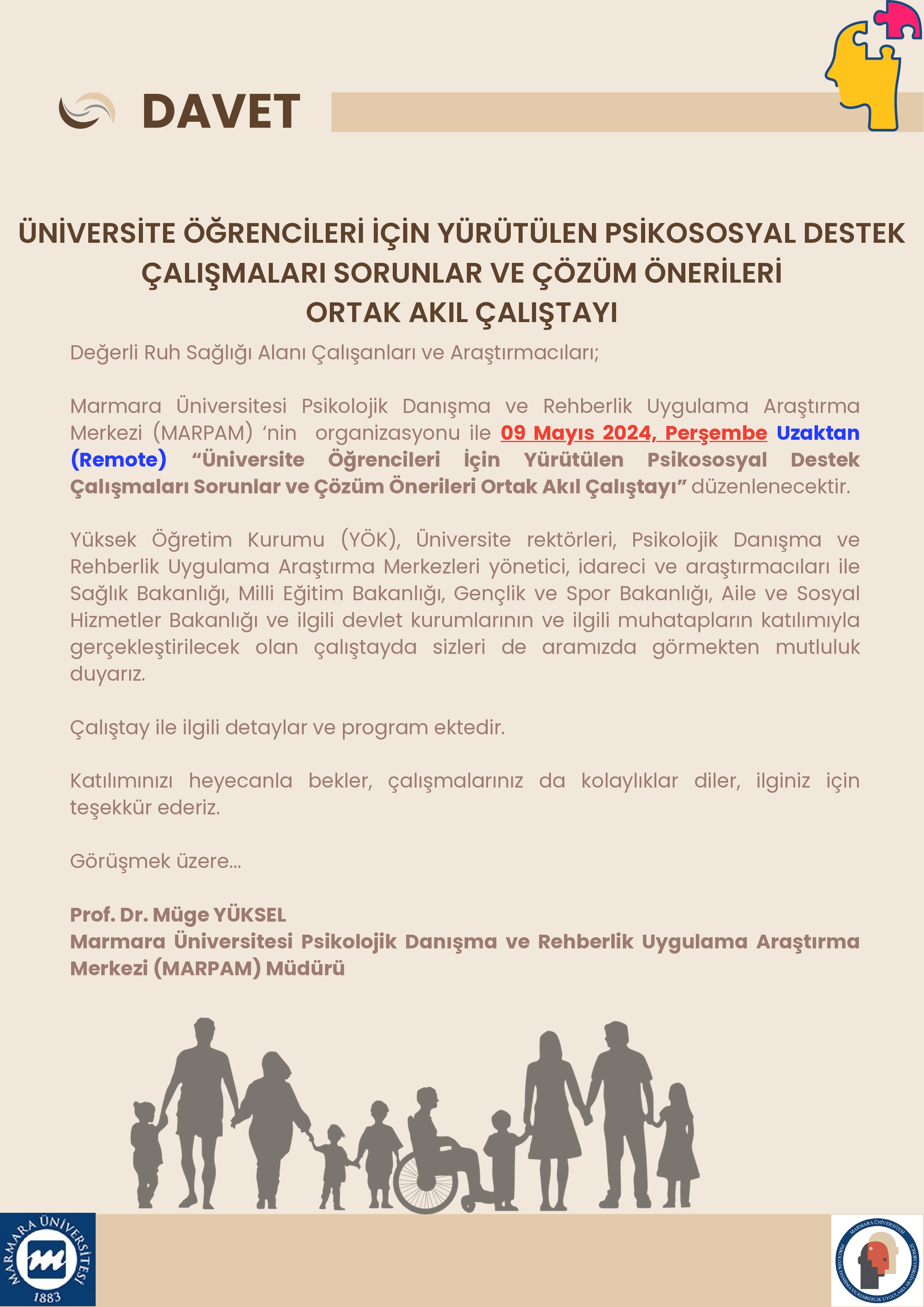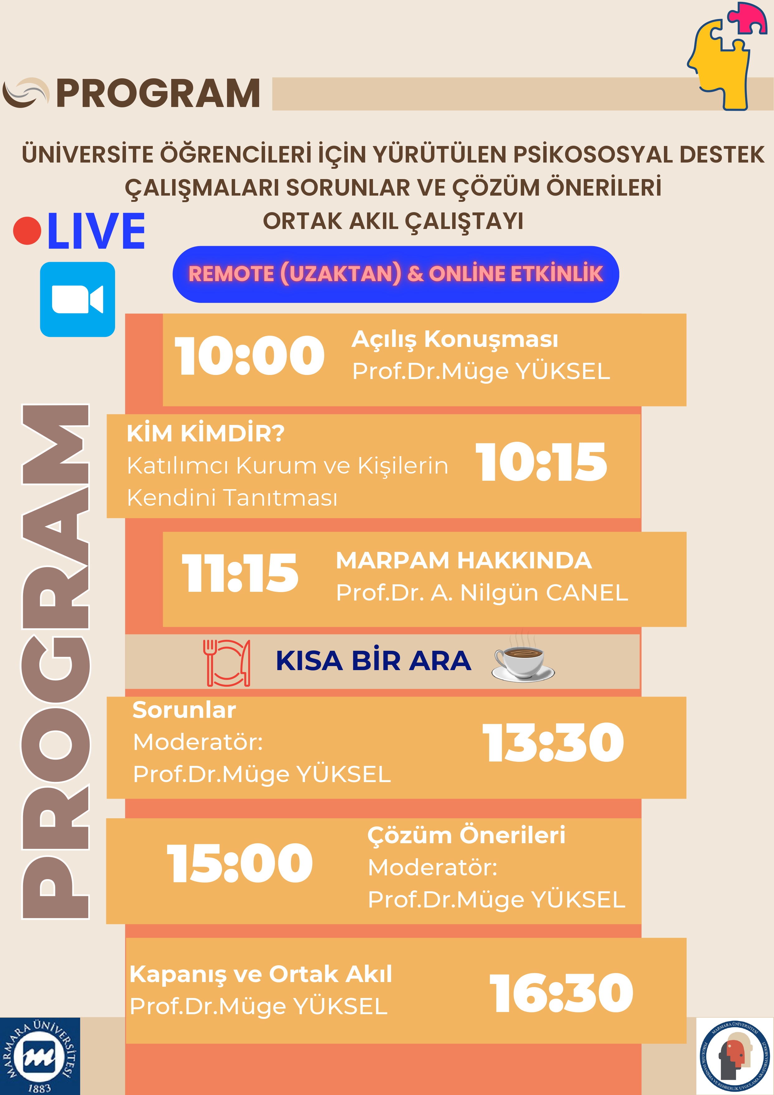 Ana Sayfa / Duyurular / Üniversite Öğrencileri İçin Yürütülen Psikososyal Destek Çalışmaları Sorunlar ve Çözüm Önerileri Ortak Akıl Çalıştayı