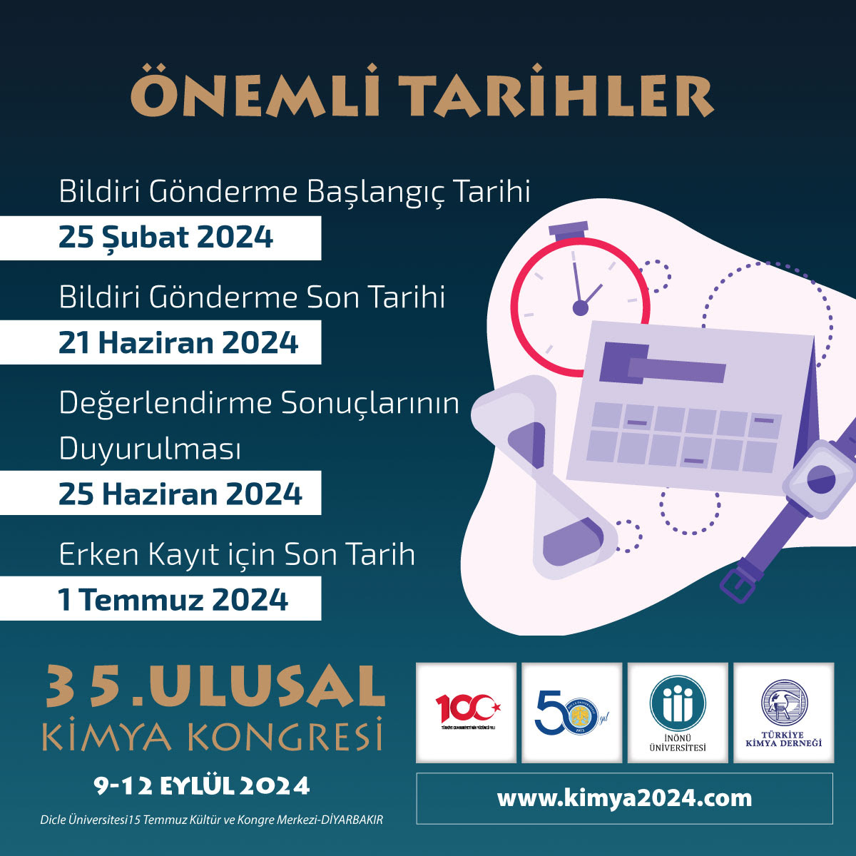 Ana Sayfa / Duyurular / 35. Ulusal Kimya Kongresi / Önemli Tarihler
