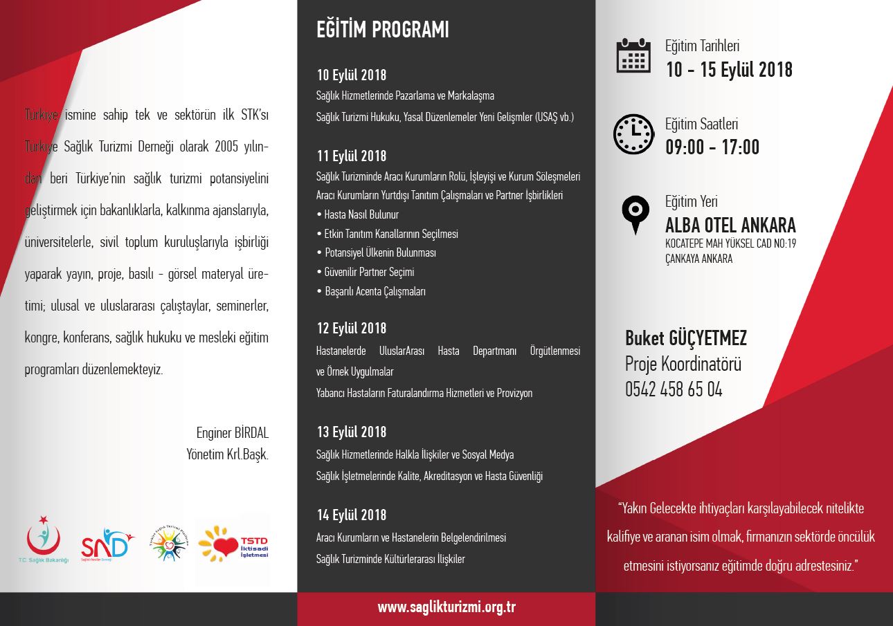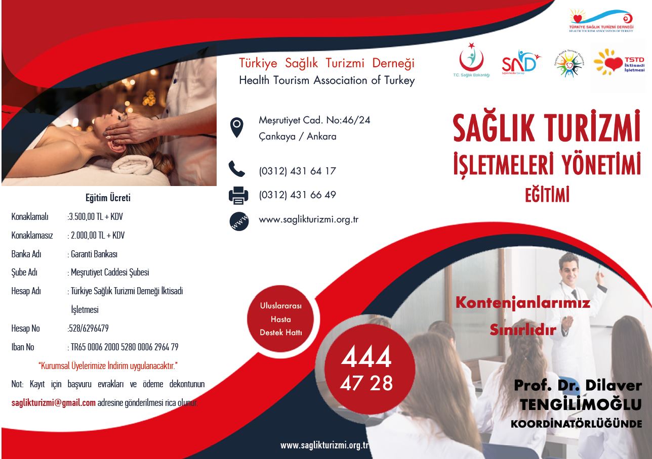 Sağlık Turizmi Ve Sağlık Turizmi İşletmeleri Yönetimi Sertifikalı Eğitim Programı Banka Bilgileri için tıklayınız.