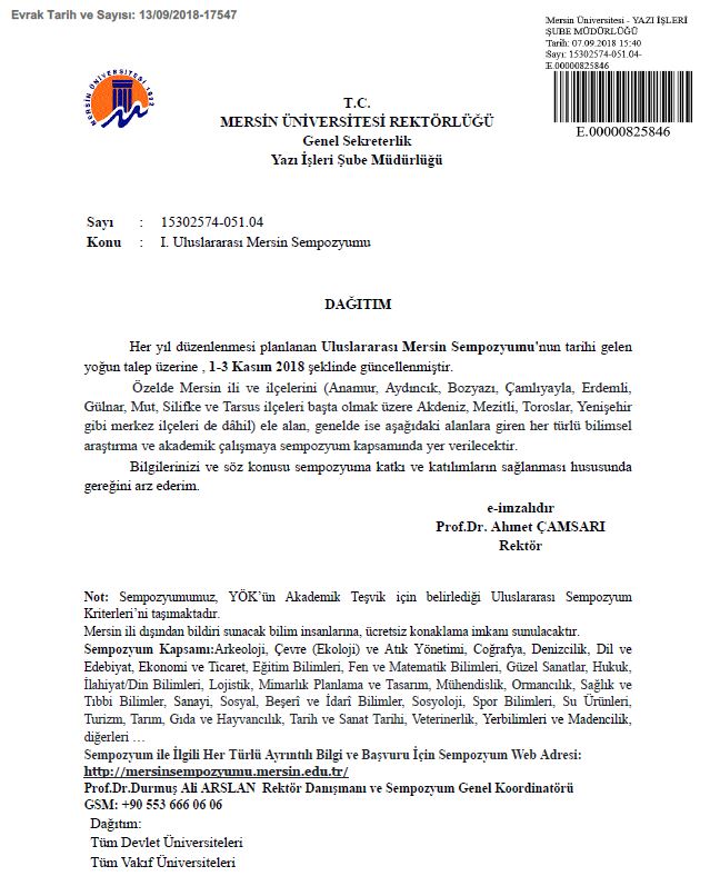 Ana Sayfa / Duyurular / I. Uluslararası Mersin Sempozyumu