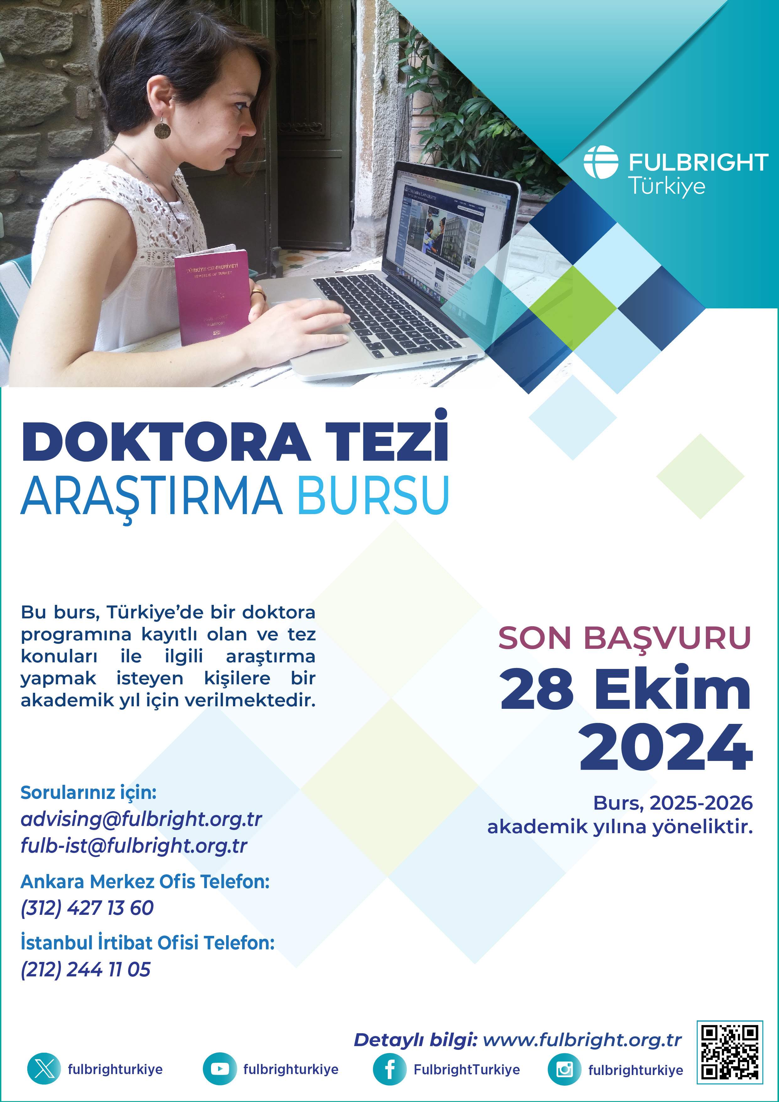 Başvurulara yeni açılmış olan Doktora Tezi Araştırma Bursumuza, bir doktora programına kayıtlı ve tez konusunu belirlemiş olan ve ABD’de tez konusu ile ilgili araştırma yapmak isteyen doktora öğrencileri başvuru yapabilirler. 2025-2026 akademik yılına yönelik verilecek Doktora Tezi Araştırma Bursumuza son başvuru tarihi 28 Ekim 2024’tür.