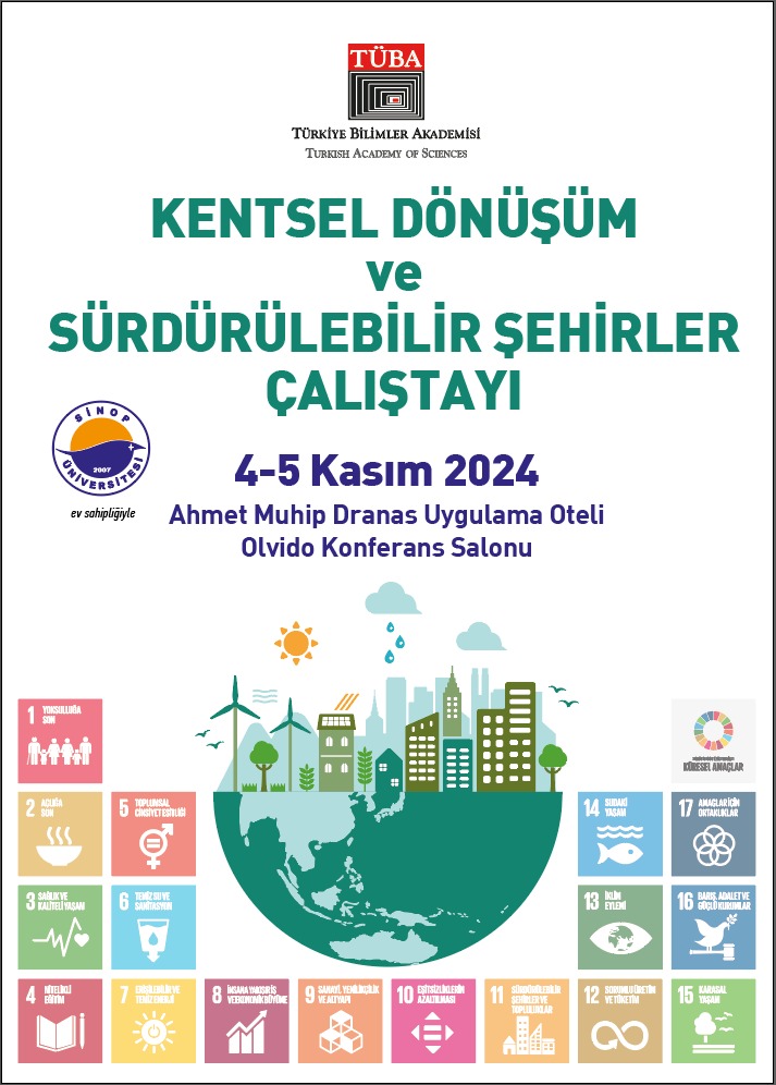 Türkiye Bilimler Akademisi (TÜBA); Çevre, Biyoçeşitlilik ve İklim Değişikliği Çalışma Grubu organizasyonuyla, Sinop Üniversitesi ev sahipliği ile Sinop’da 04-05 Kasım 2024 tarihinde “Kentsel Dönüşüm ve Sürdürülebilir Şehirler Çalıştayı”nı düzenleyecektir.