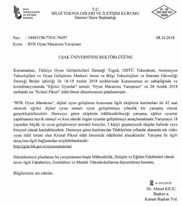 Ana Sayfa / Duyurular / BTK Oyun Maratonu Yarışması