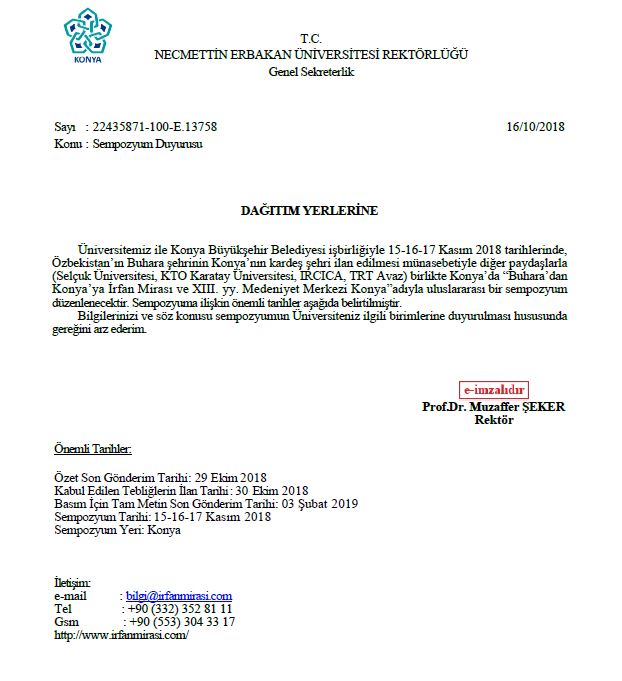 Ana Sayfa / Duyurular / Buhara’dan Konya’ya İrfan Mirası ve XIII. yy. Medeniyet Merkezi Konya