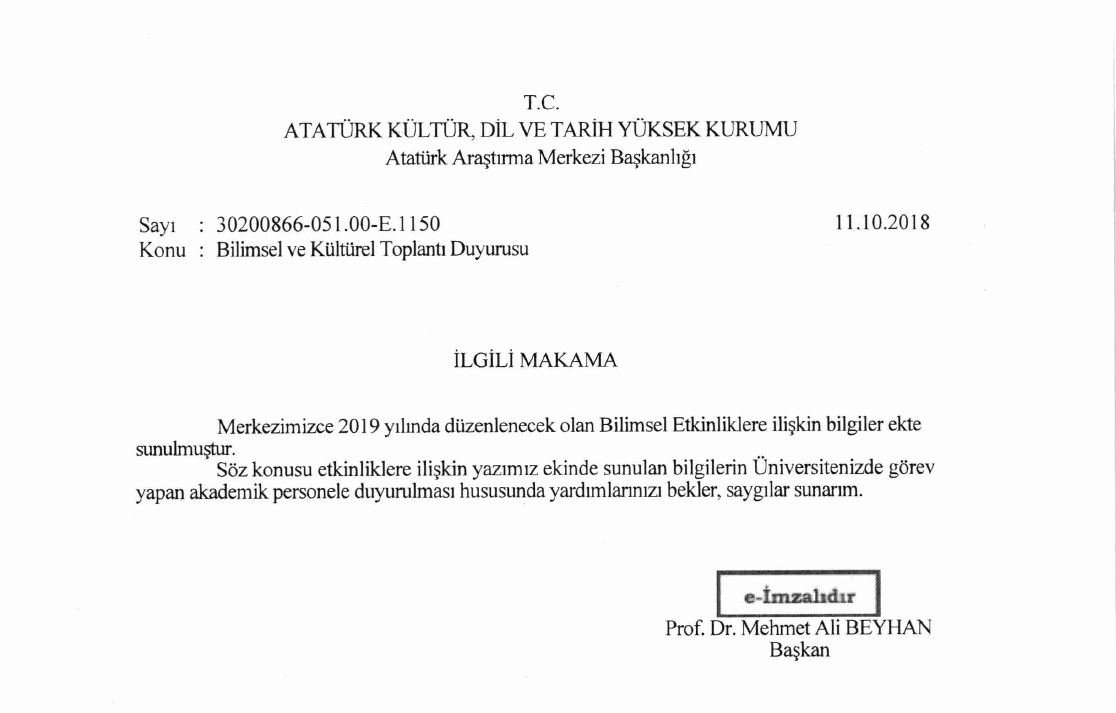 Bilimsel ve Kültürel Toplantı Duyurusu