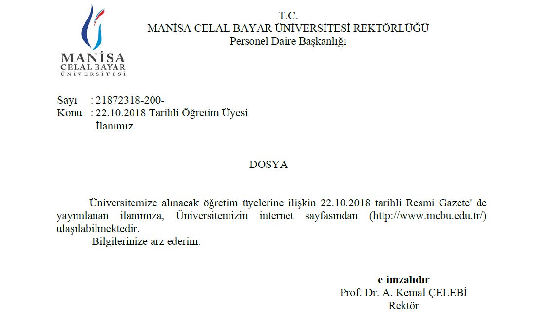 Ana Sayfa / Duyurular / Öğretim Üyesi İlanı