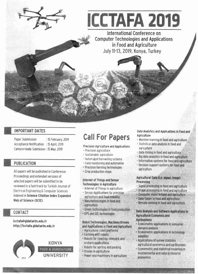Ana Sayfa / Duyurular / Uluslararası Gıda ve Tarım Bikgisayar Teknolojiler, ve Uygulamaları Konferansı