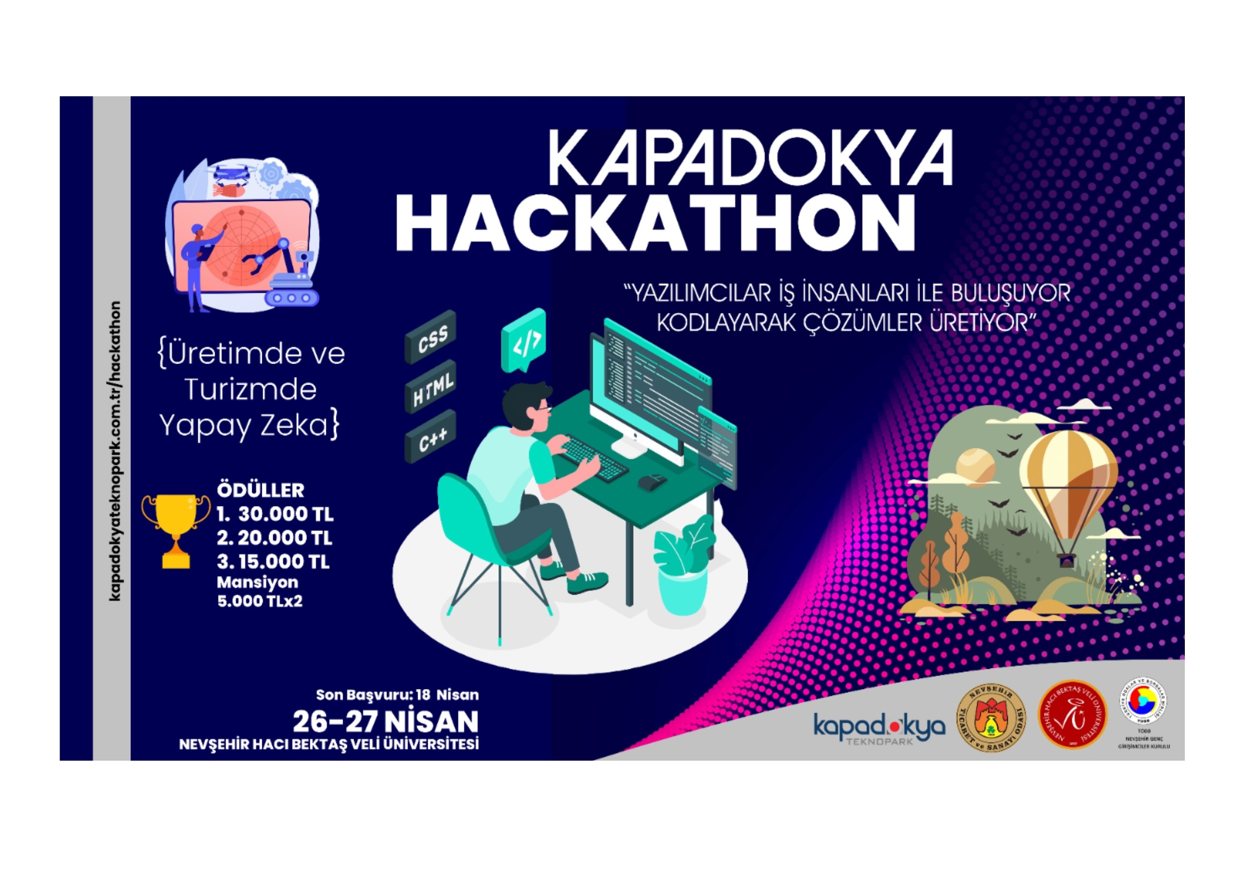 Detaylı Bilgi ve Başvuru İçin: https://kapadokyateknopark.com.tr/hackathon/