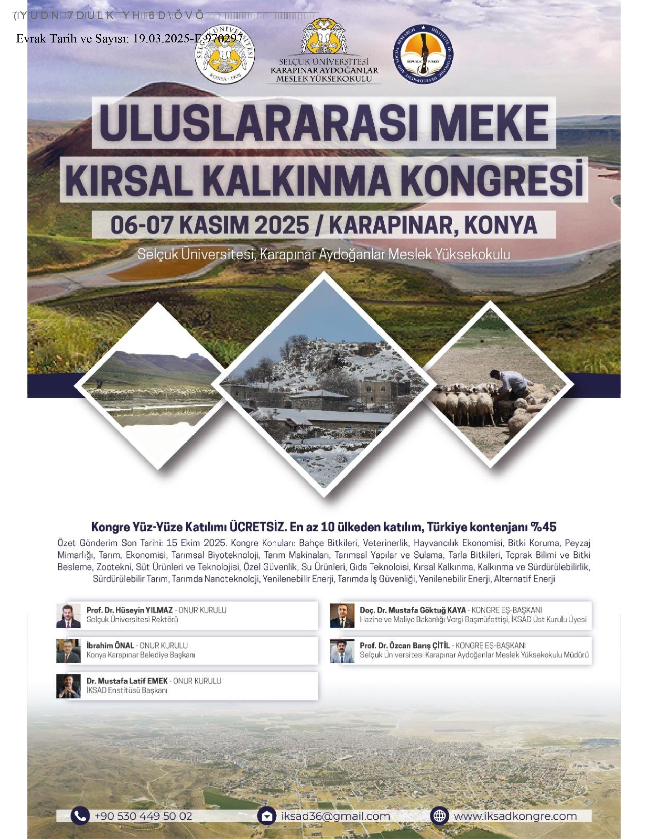 Ana Sayfa / Duyurular / Uluslararası Meke Kırsal Kalkınma Kongresi