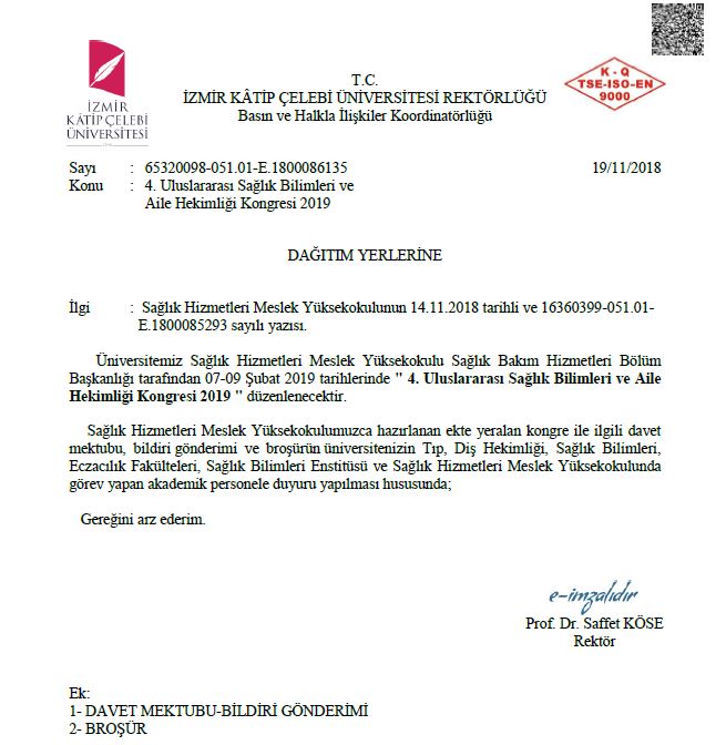 Davet Mektubu - Bildiri Gönderimi için tıklayınız.