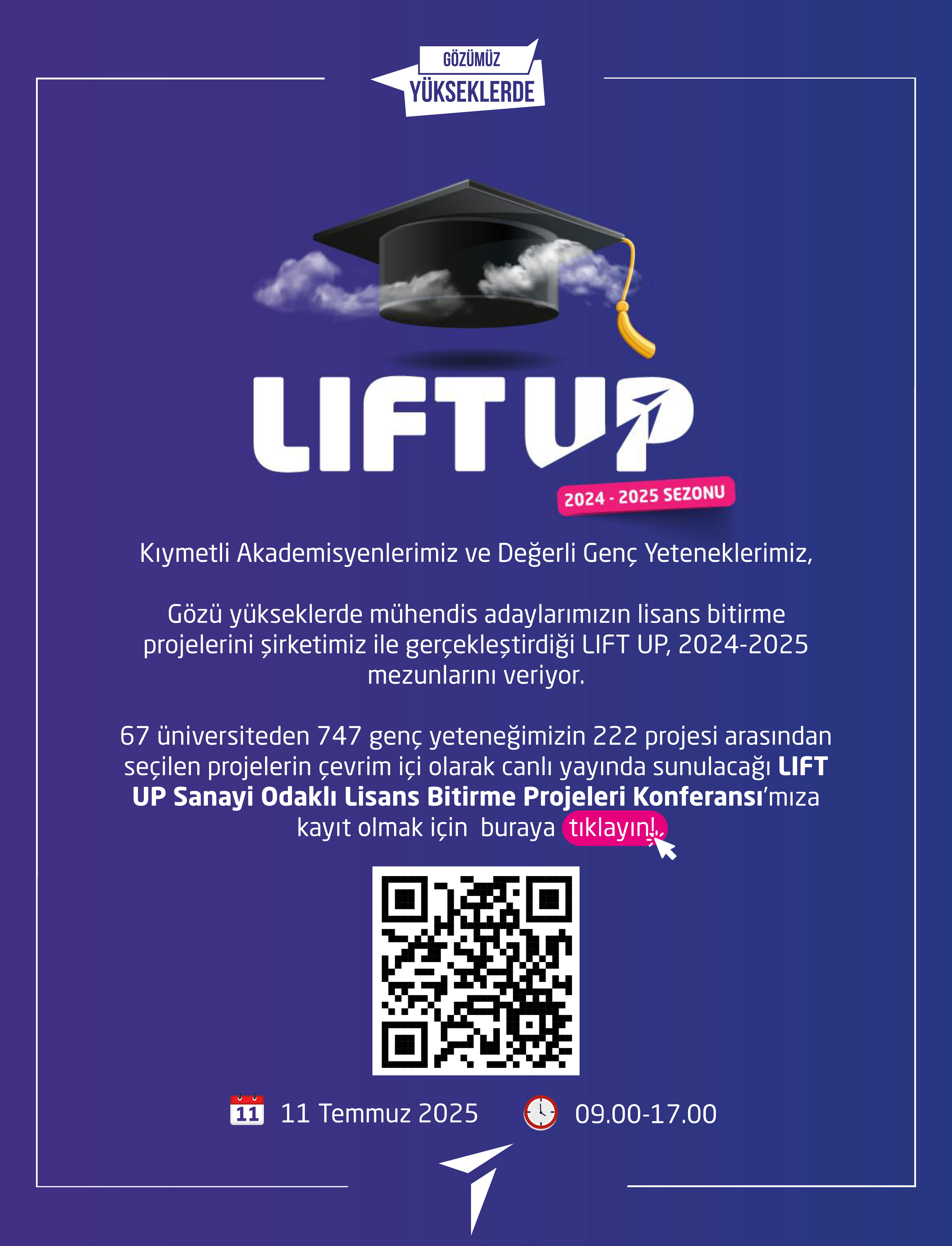 Ana Sayfa / Duyurular / 2024-2025 dönemi LIFT UP Sanayi Odaklı Lisans Bitirme Projeleri Online Kapanış Konferansı Hakkında