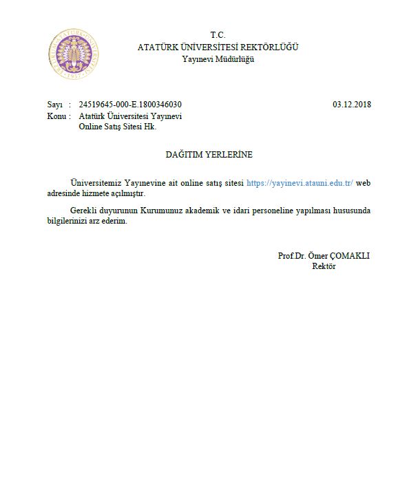 Ana Sayfa / Duyurular / Atatürk Üniversitesi Yayınevi Online Satış Sitesi Hk.