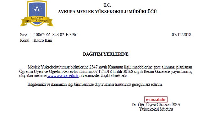 Ana Sayfa / Duyurular / Kadro İlanı