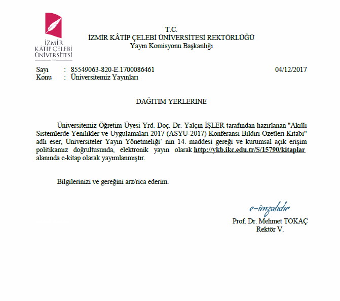 Ana Sayfa / Duyurular / Akıllı Sistemlerde Yenilikler ve Uygulamaları Konferansı Bildiri Özetleri Kitabı