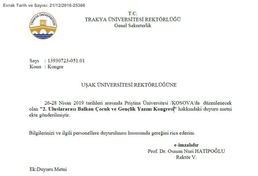 Ana Sayfa / Duyurular / 2. Uluslararası Balkan Çocuk ve Gençlik Yazını Kongresi