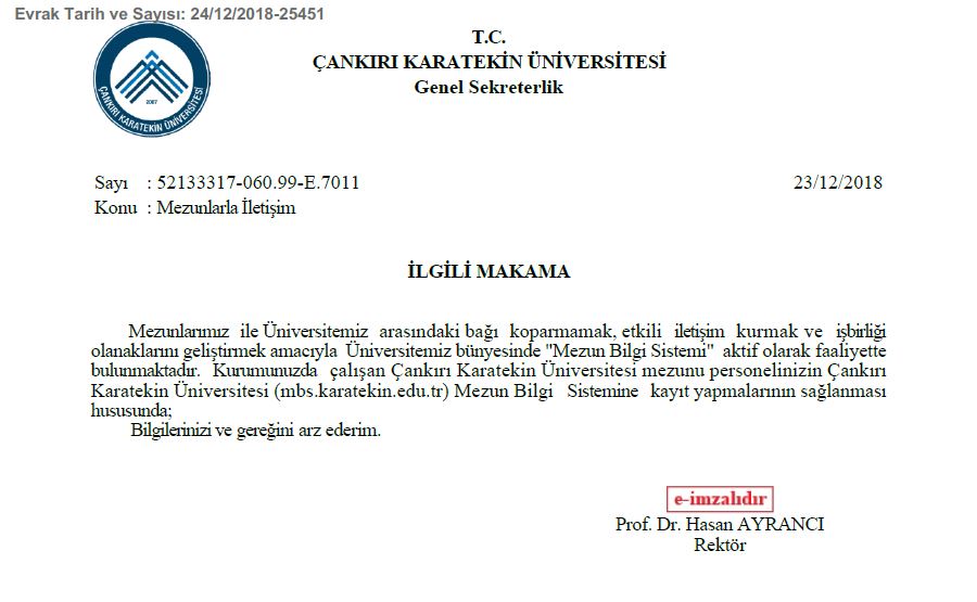 Ana Sayfa / Duyurular / Mezunlarla İletişim