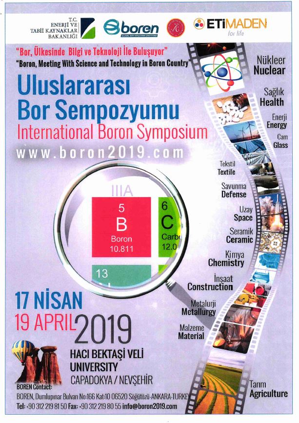 Ana Sayfa / Duyurular / Uluslararası Bor Sempozyumu (BORON 2019)