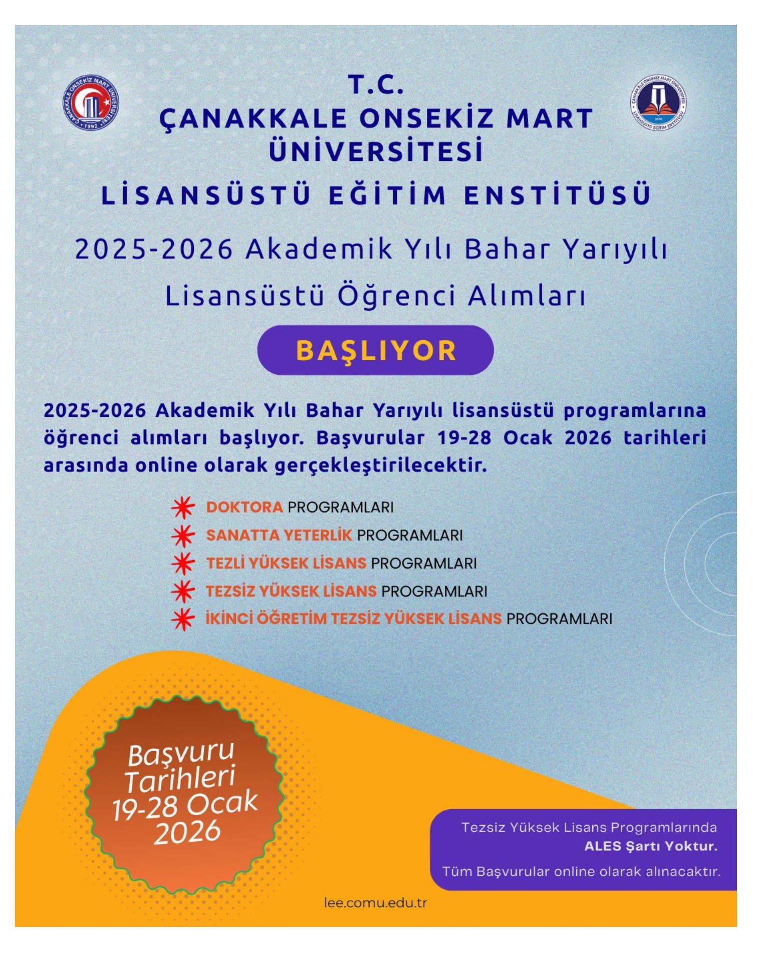 Yabancı Dil Sınavı Başvuru Linki: https://ydyo.comu.edu.tr/arsiv/duyurular/0cak-2026-lisansustuegitim-enstitusu-yabanci-dil--r944.html