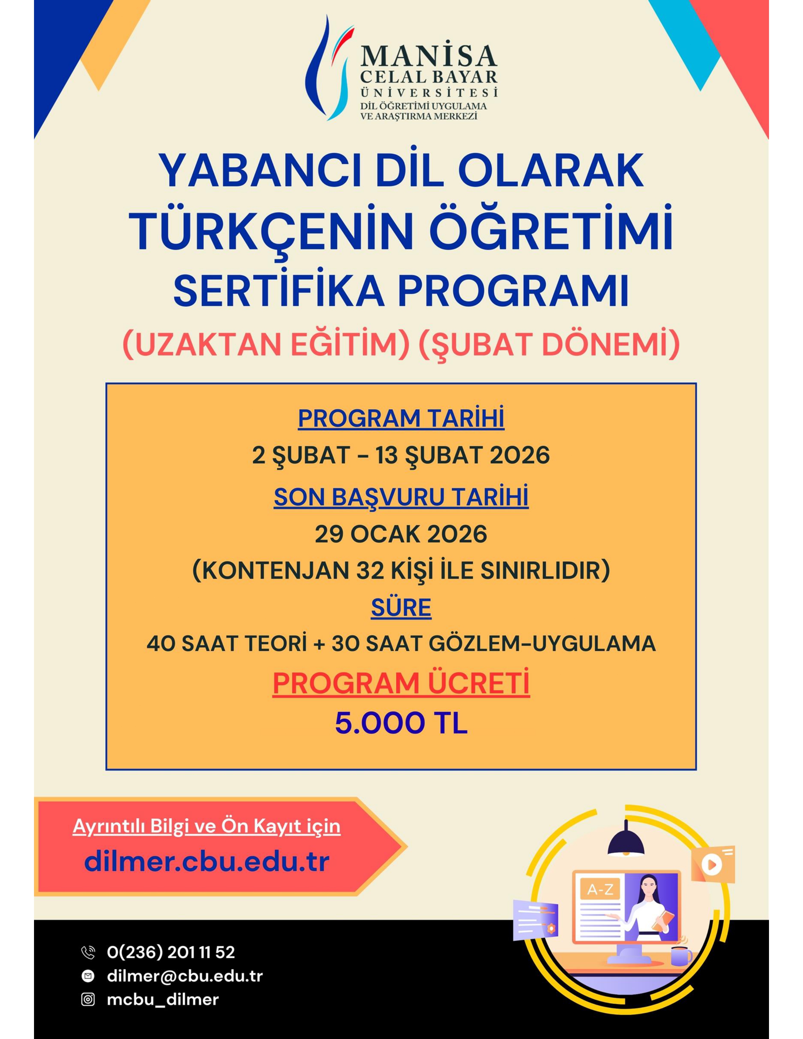 7 Ocak 2026, Çarşamba Yabancı Dil Olarak Türkçenin Öğretimi Sertifika Programı
