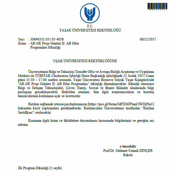 Ana Sayfa / Duyurular / Yaşar Üniversitesi AR-GE Proje Günleri II: AB Hibe Programları Etkinliği