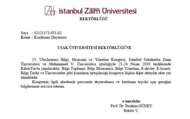 Ana Sayfa / Duyurular / 15. Uluslararası Bilgi, Ekonomi ve Yönetim Kongresi