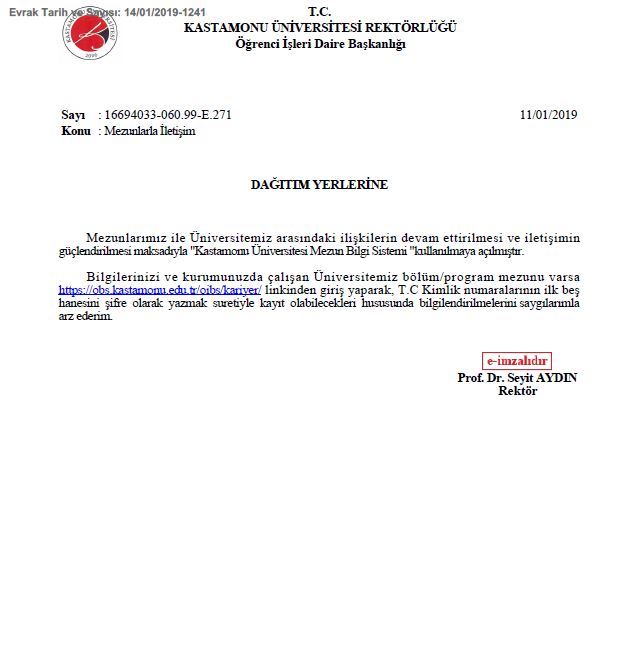 Ana Sayfa / Duyurular / Mezunlarla İletişim