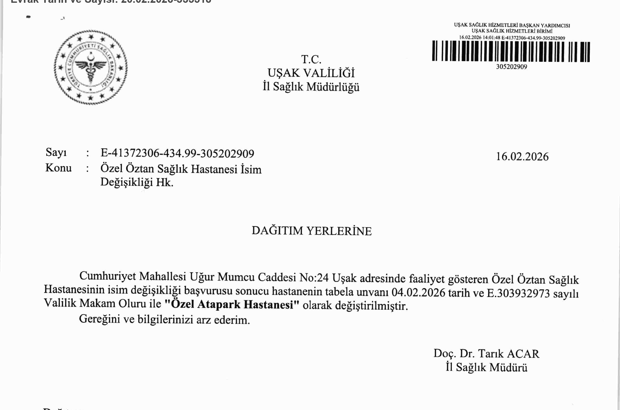 Ana Sayfa / Duyurular / Özel Öztan Sağlık Hastanesi isim Değişikliği Hk.