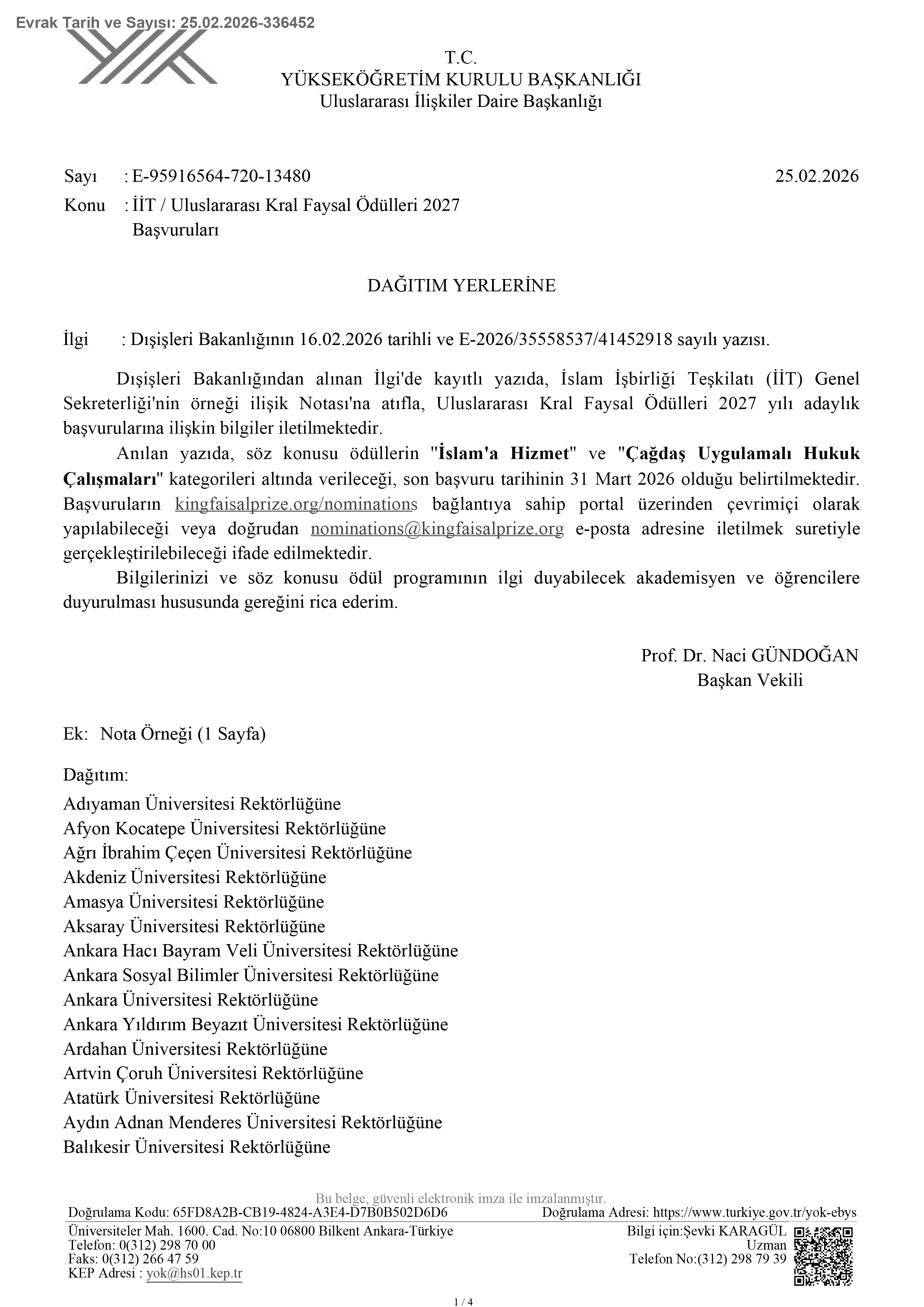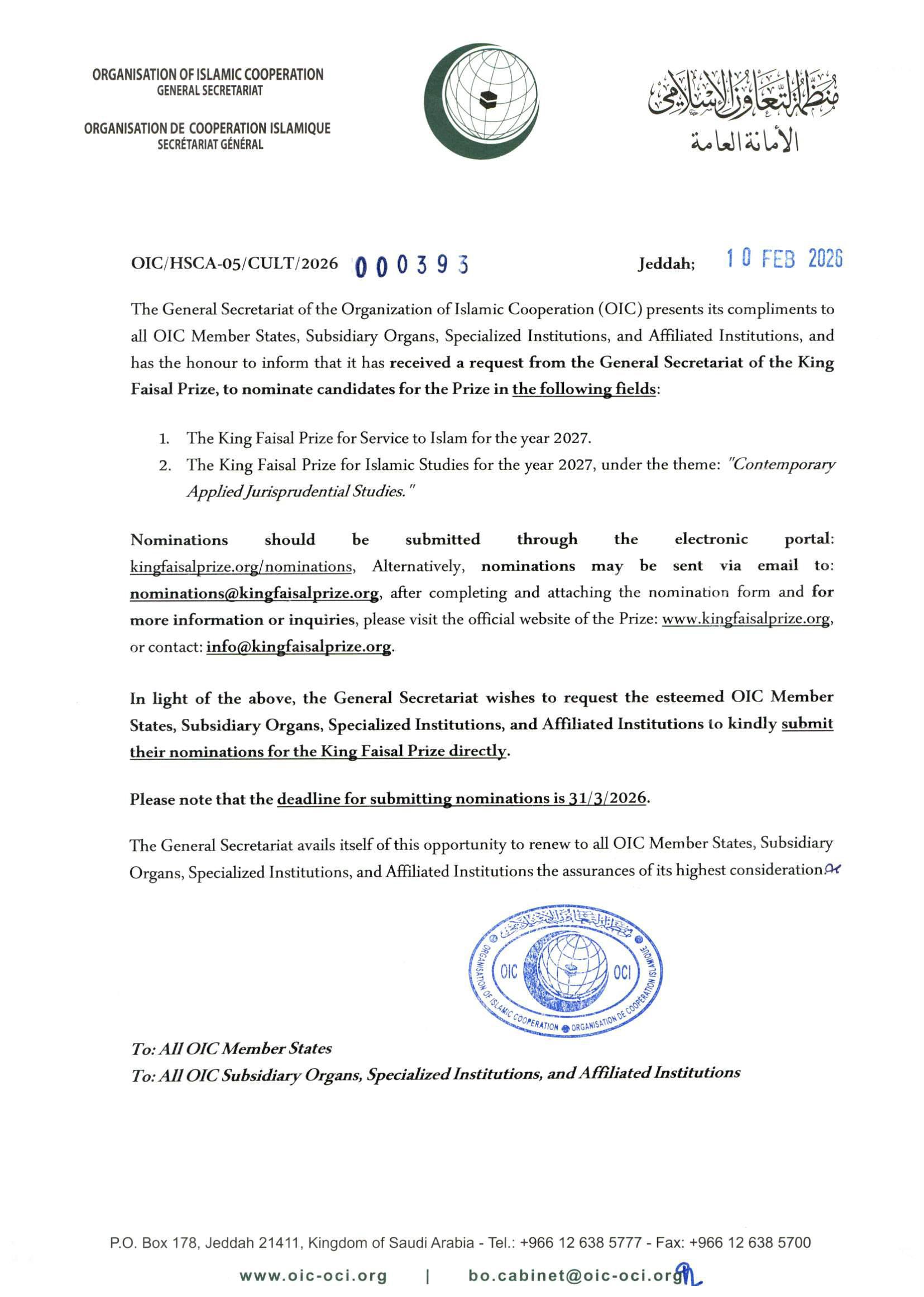 İİT / Uluslararası Kral Faysal Ödülleri 2027 Başvuruları
