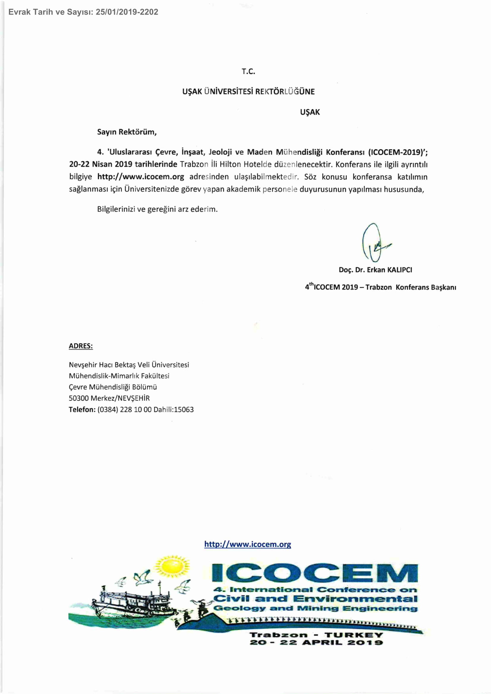 Ana Sayfa / Duyurular / 4. Uluslararası Çevre, İnşaat, Jeoloji ve Maden Mühendisliği Konferansı