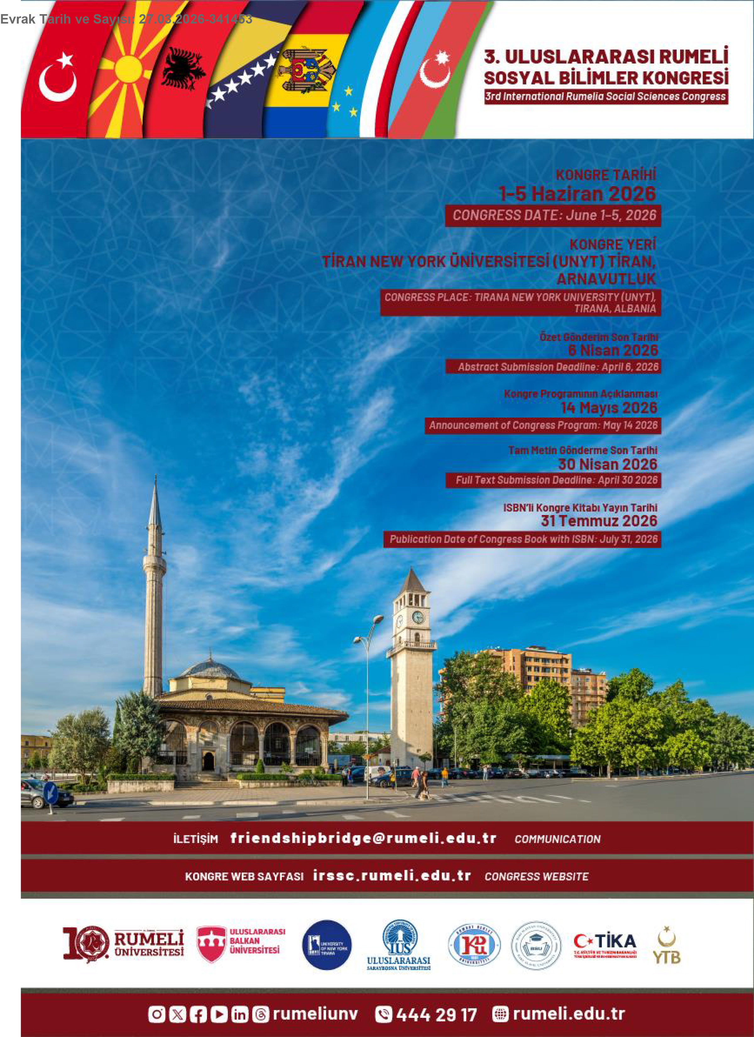 30 Mart 2026, Pazartesi III. Uluslararası Rumeli Sosyal Bilimler Kongresi