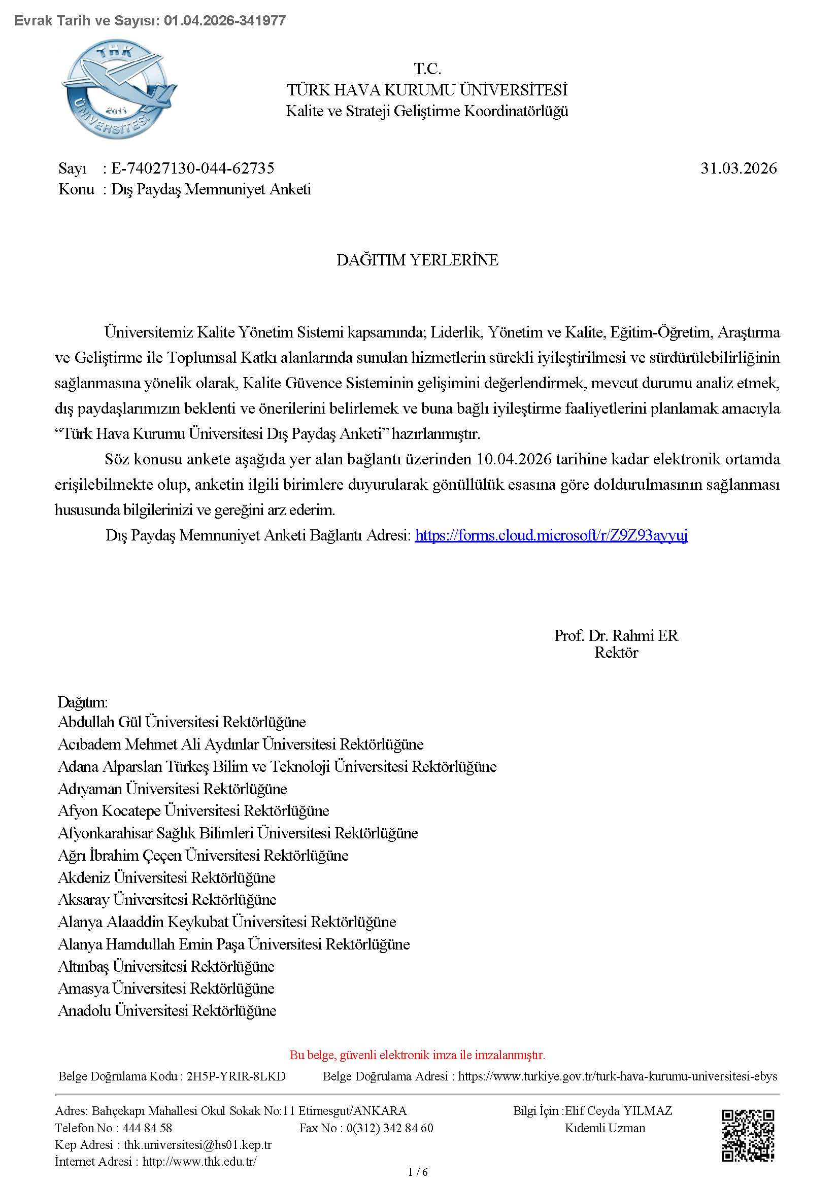 1 Nisan 2026, Çarşamba Dış Paydaş Memnuniyet Anketi