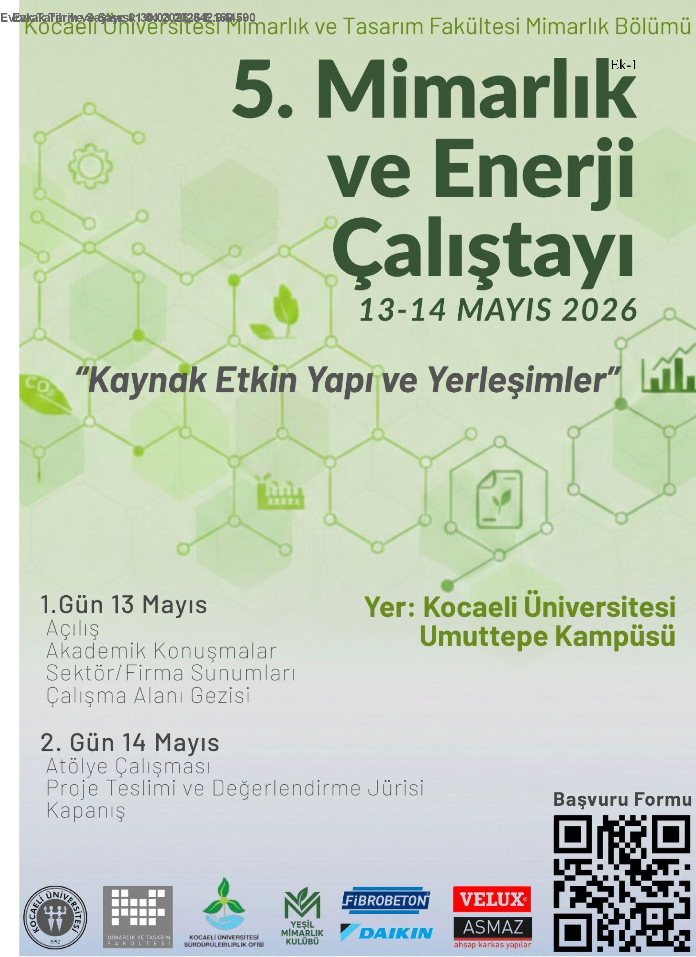 2 Nisan 2026, Perşembe 5. Mimarlık ve Enerji Çalıştayı Duyurusu